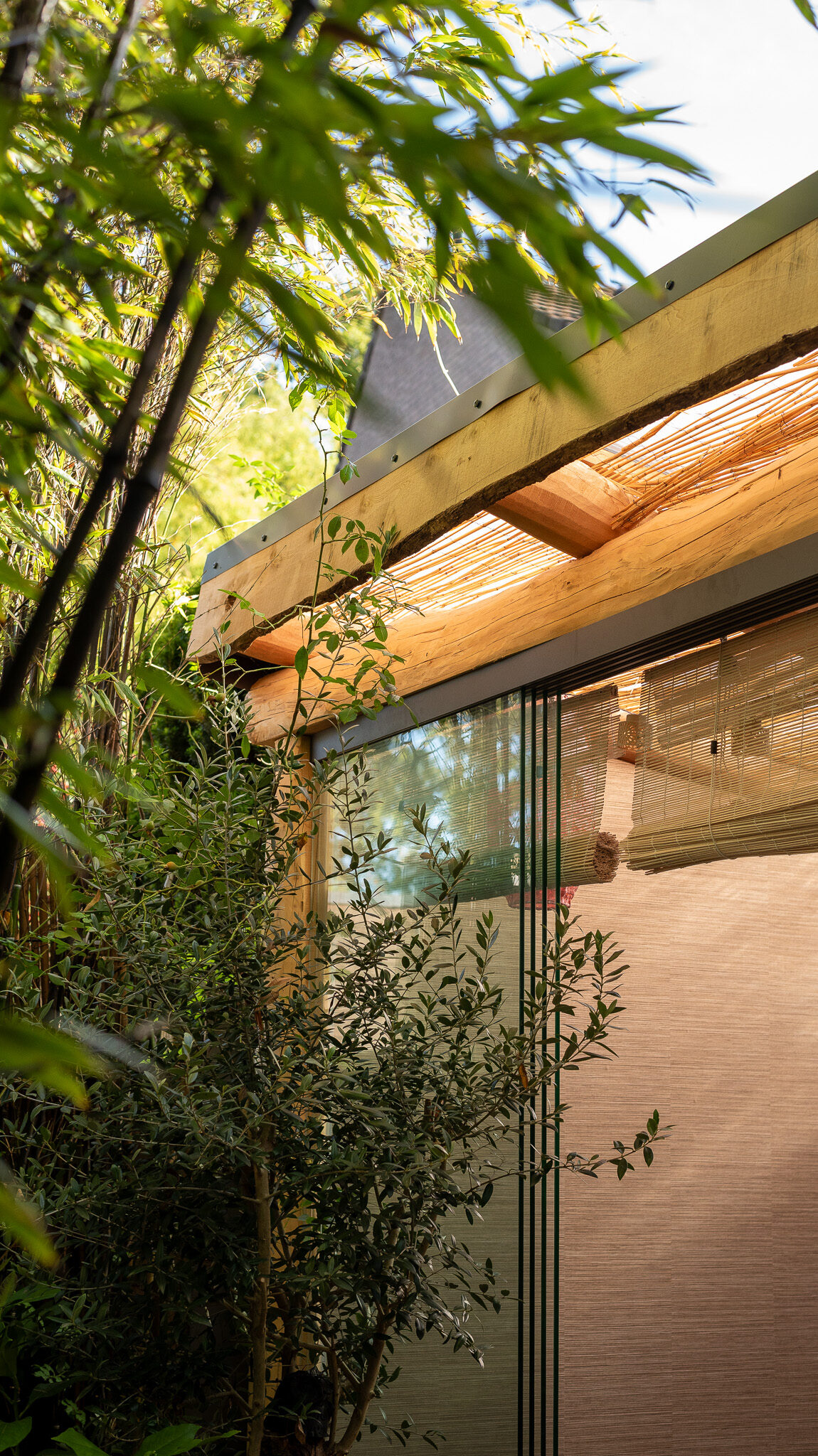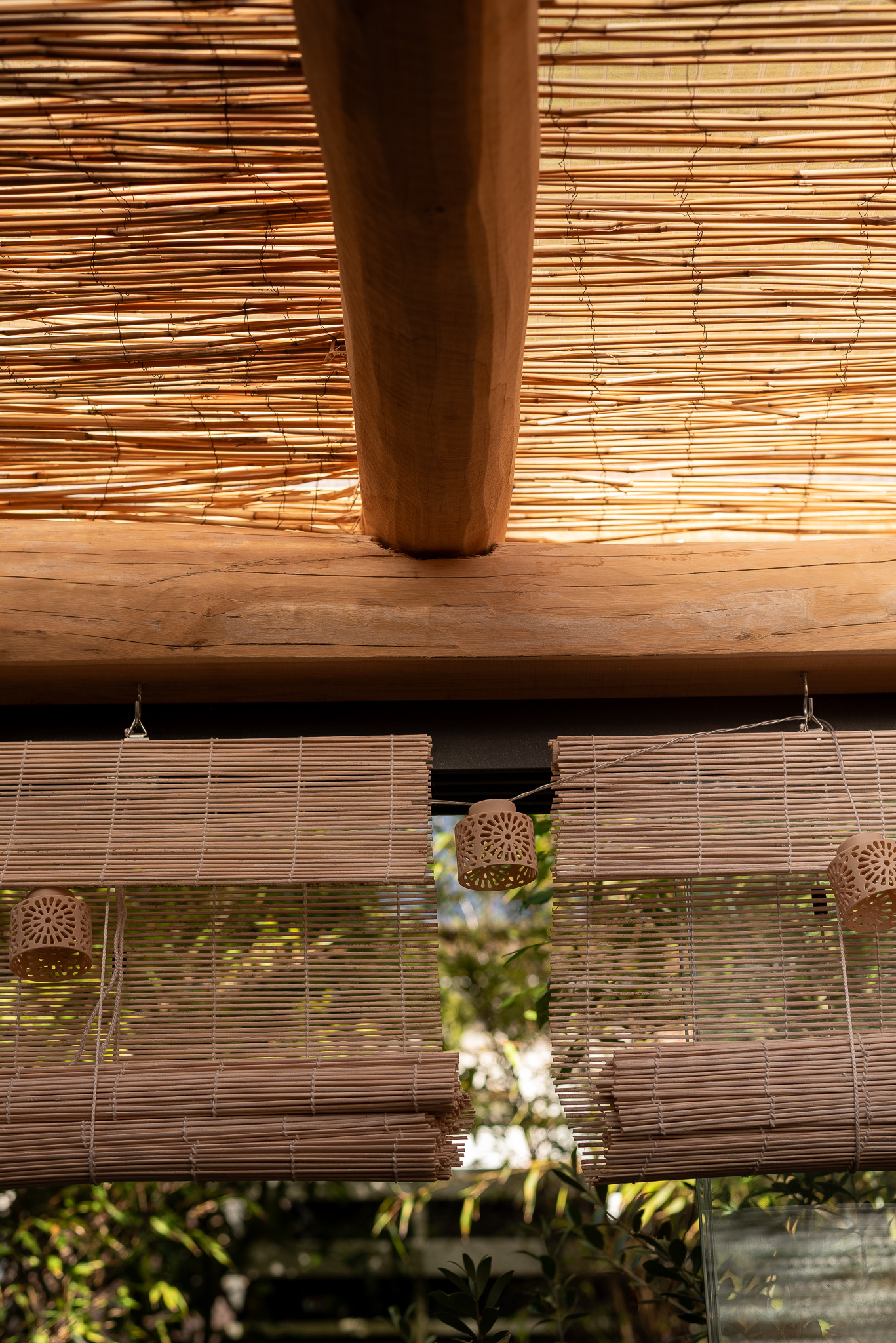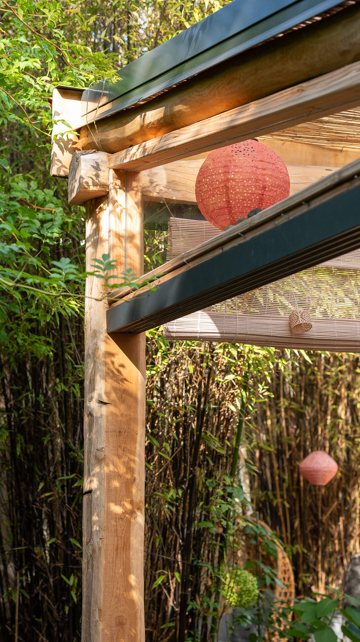 Met deze overkapping in Ibiza stijl waan je je op vakantie in eigen tuin… Hier zijn natuurlijke elementen gecombineerd met praktische elementen, om het zo aangenaam mogelijk te maken onder de overkapping.