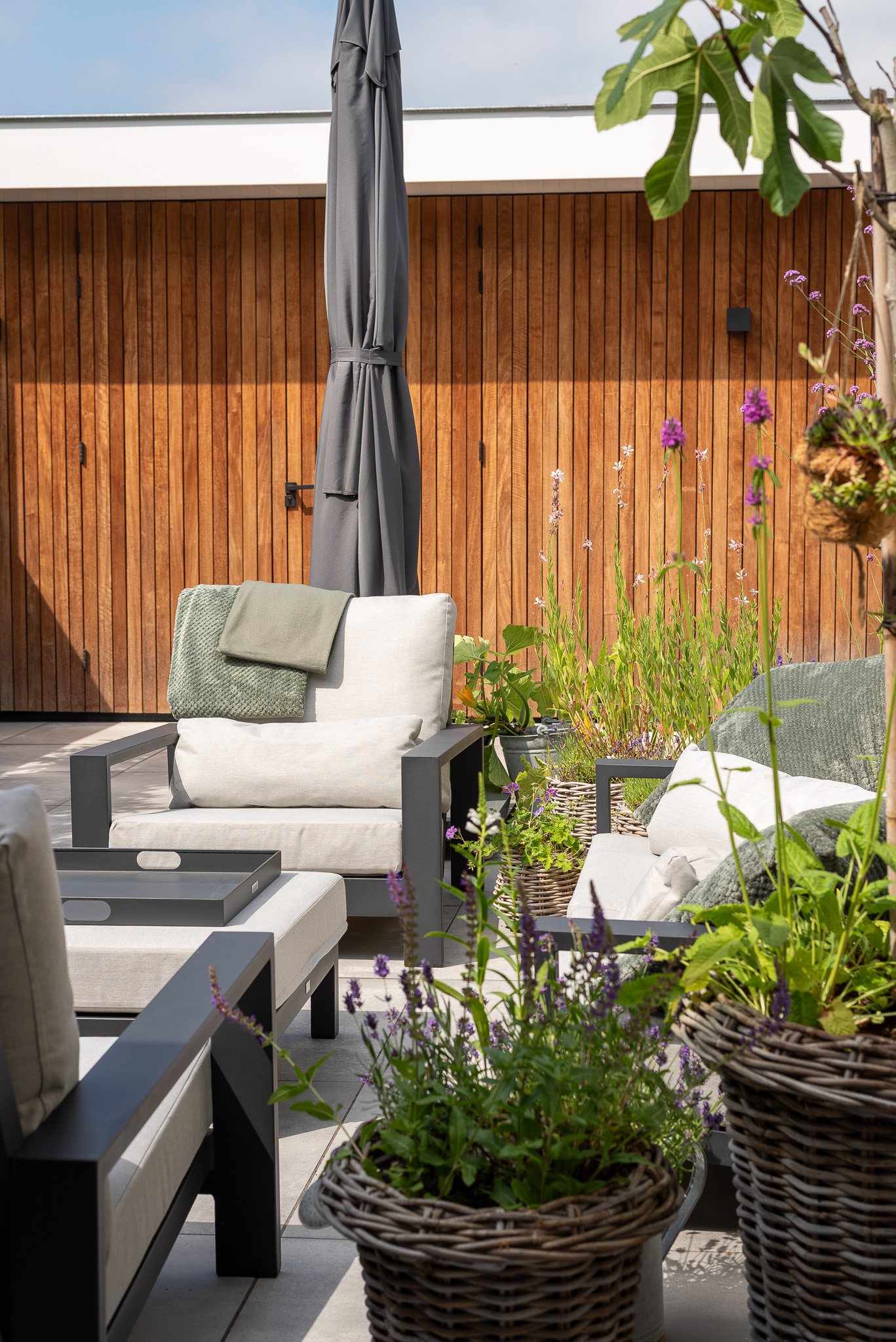 Dit complete plaatje is tot stand gekomen door een fijne samenwerking met de klant en verschillende partijen. In deze tuin is werkelijk aan alles gedacht en elke vierkante centimeter is benut. Laat je inspireren…